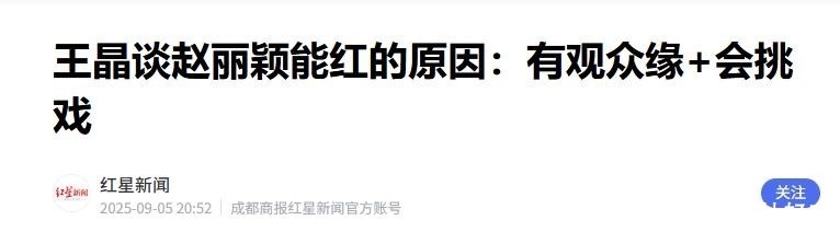 信源来源:红星新.9.5 王晶谈赵丽颖能红的原因:有观众缘+会挑戏